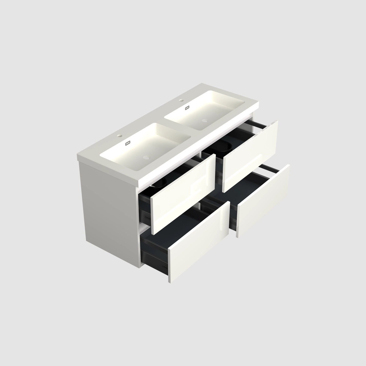 Wastafelonderkast Lepor Glans Wit 4-lades - 120x45x58cm - 2-uitsparingen