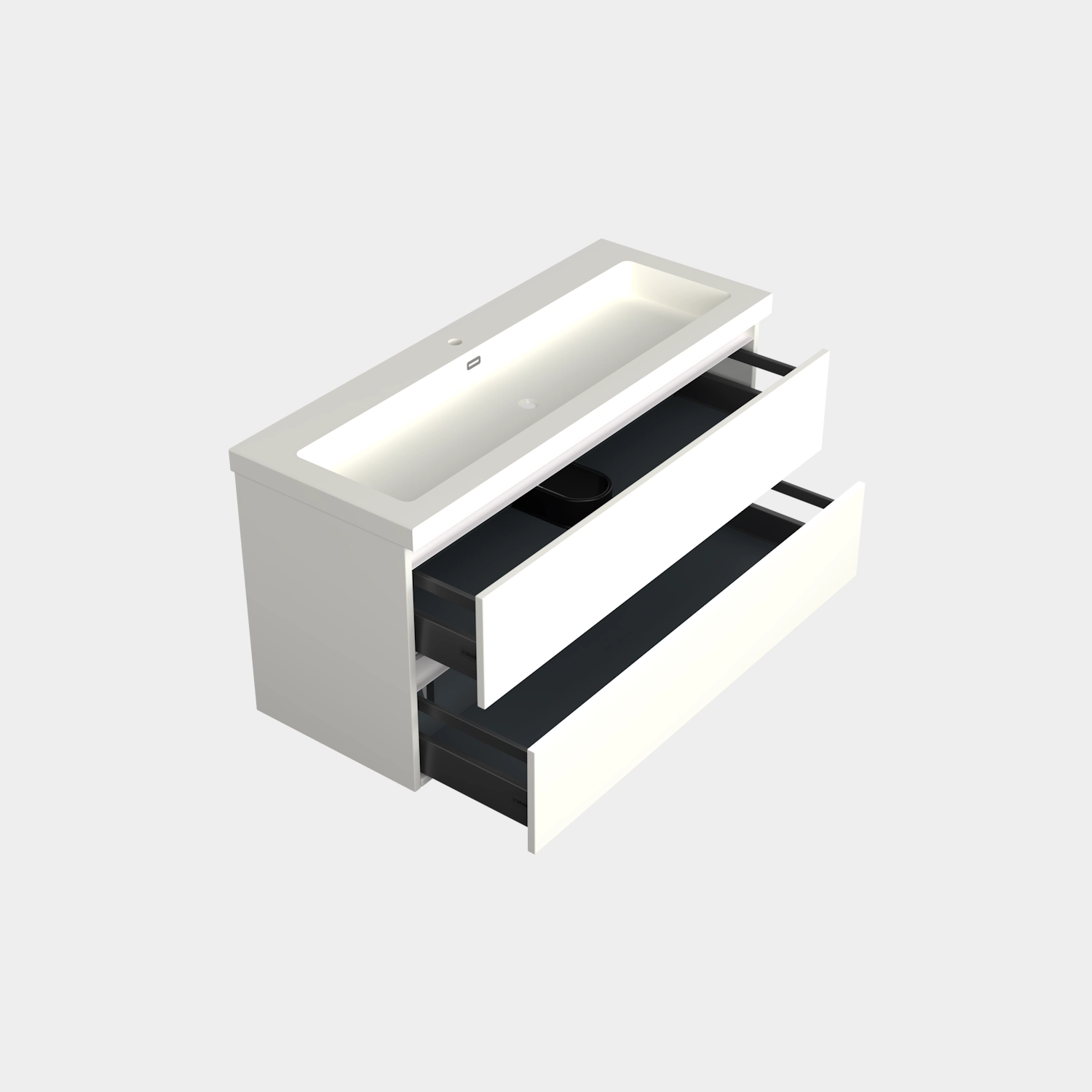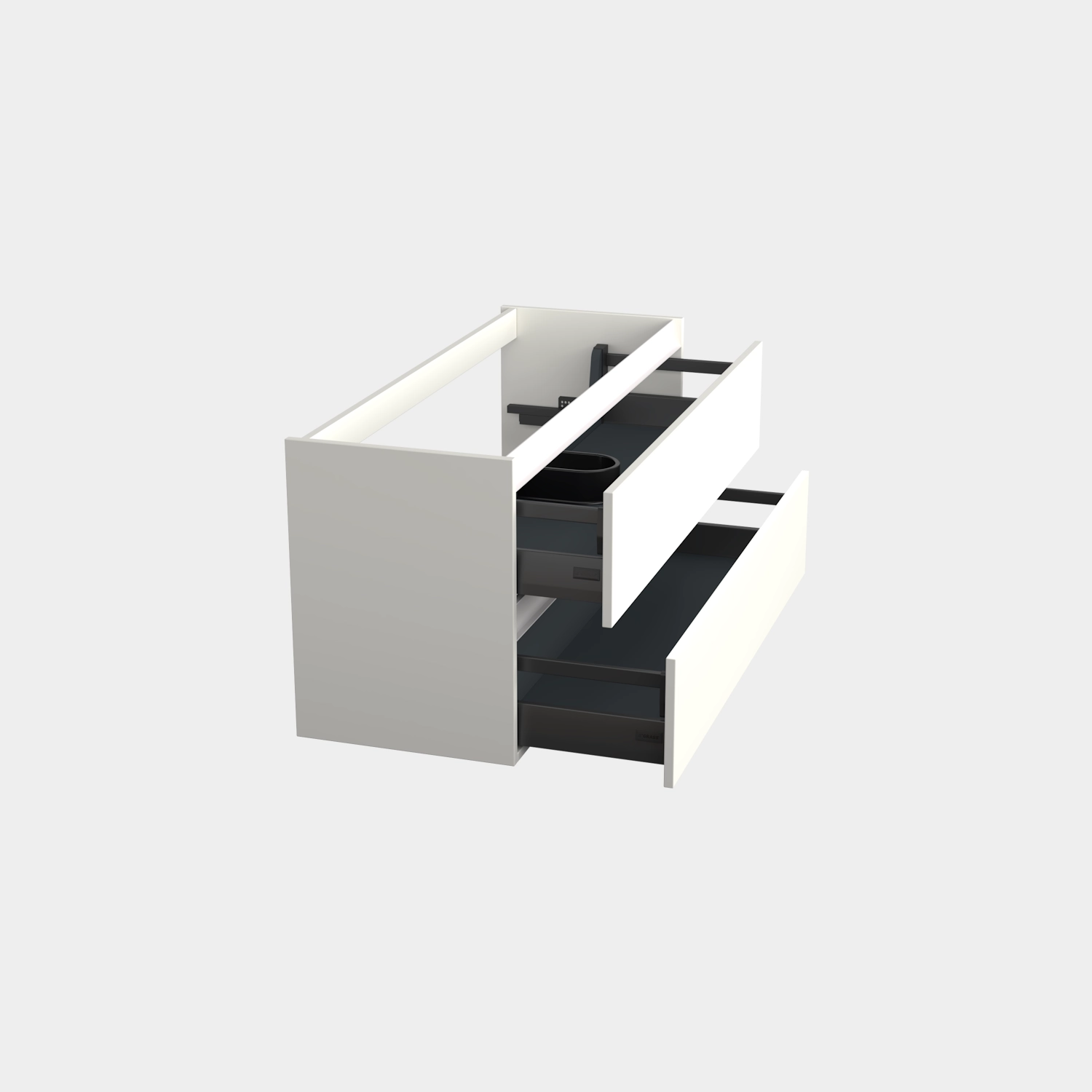 ✓ Onderkast 119 x 45 x 58 cm ➤ Excl. Wastafel ✓ Kleur: Mat Wit ✓ Twee diepe Moderne greeploos lades met 1 sifon uitsparing in het midden ✓ MDF met FSC-keurmerk ✓ Installatie: Voorgemonteerd