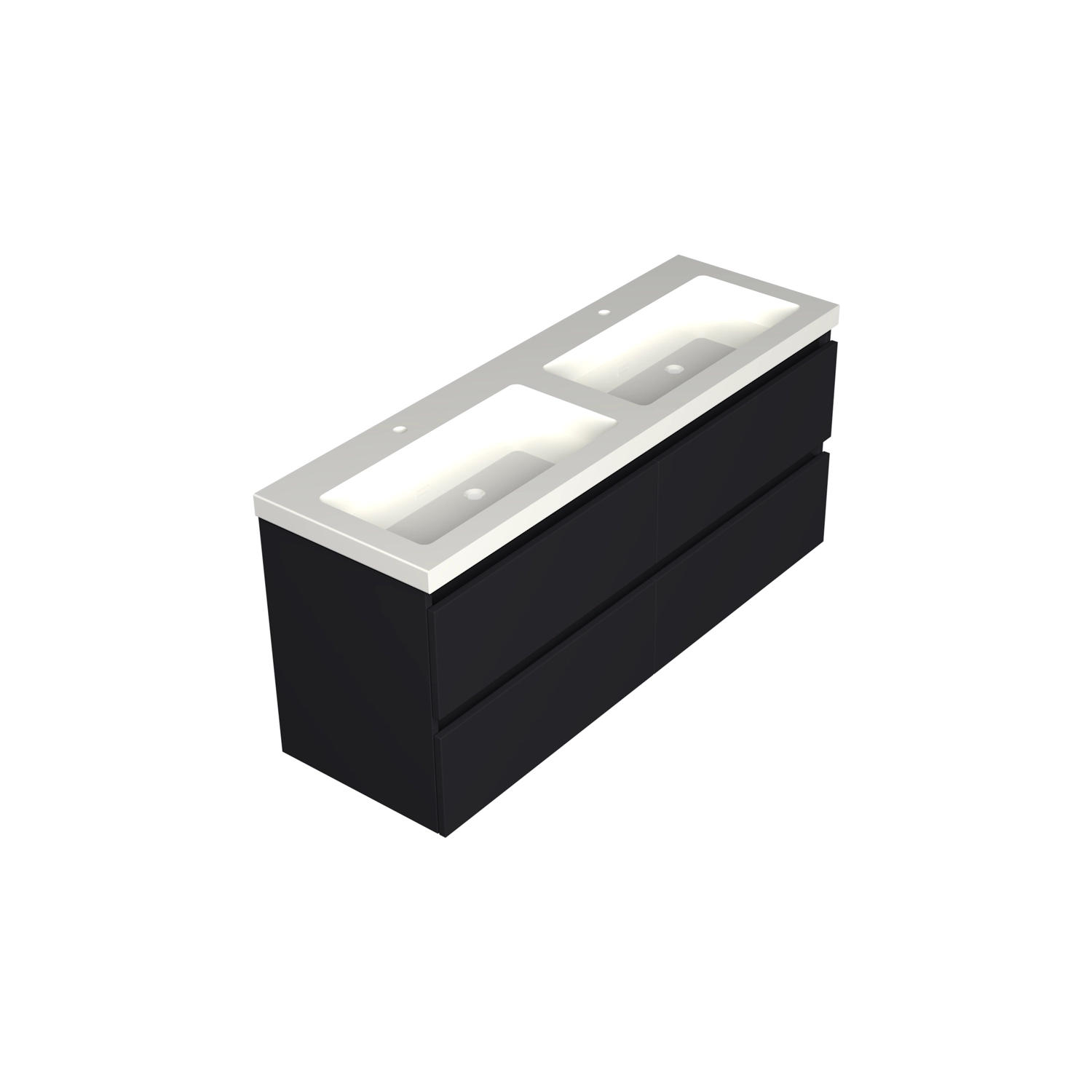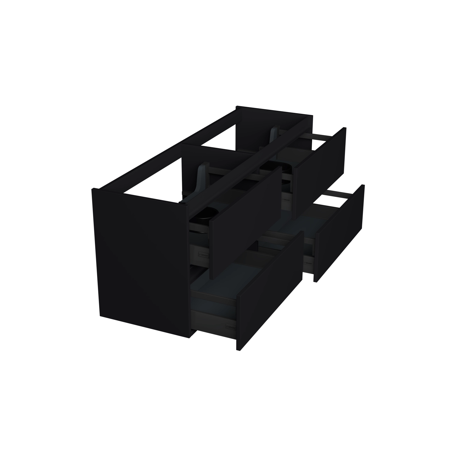 Wastafelonderkast Lumiere Mat Zwart 4-lades - 140x45x58cm - 2-uitsparingen