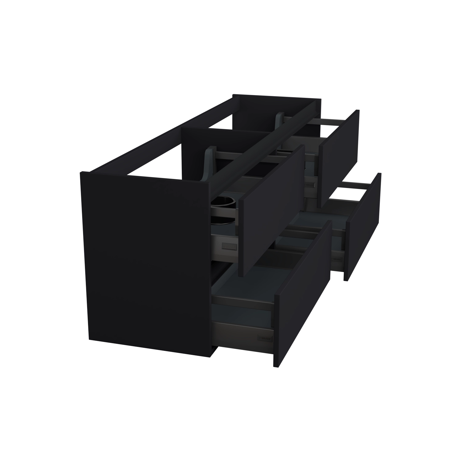 Onderkast 199 x 45 x 58 cm ➤ Excl. Wastafel ✓ Kleur: Lumiere Mat Zwart ✓ 4 Diepe greeploos lades met 2 sifon uitsparingen ✓ MDF met FSC-keurmerk ✓ Installatie: Voorgemonteerd