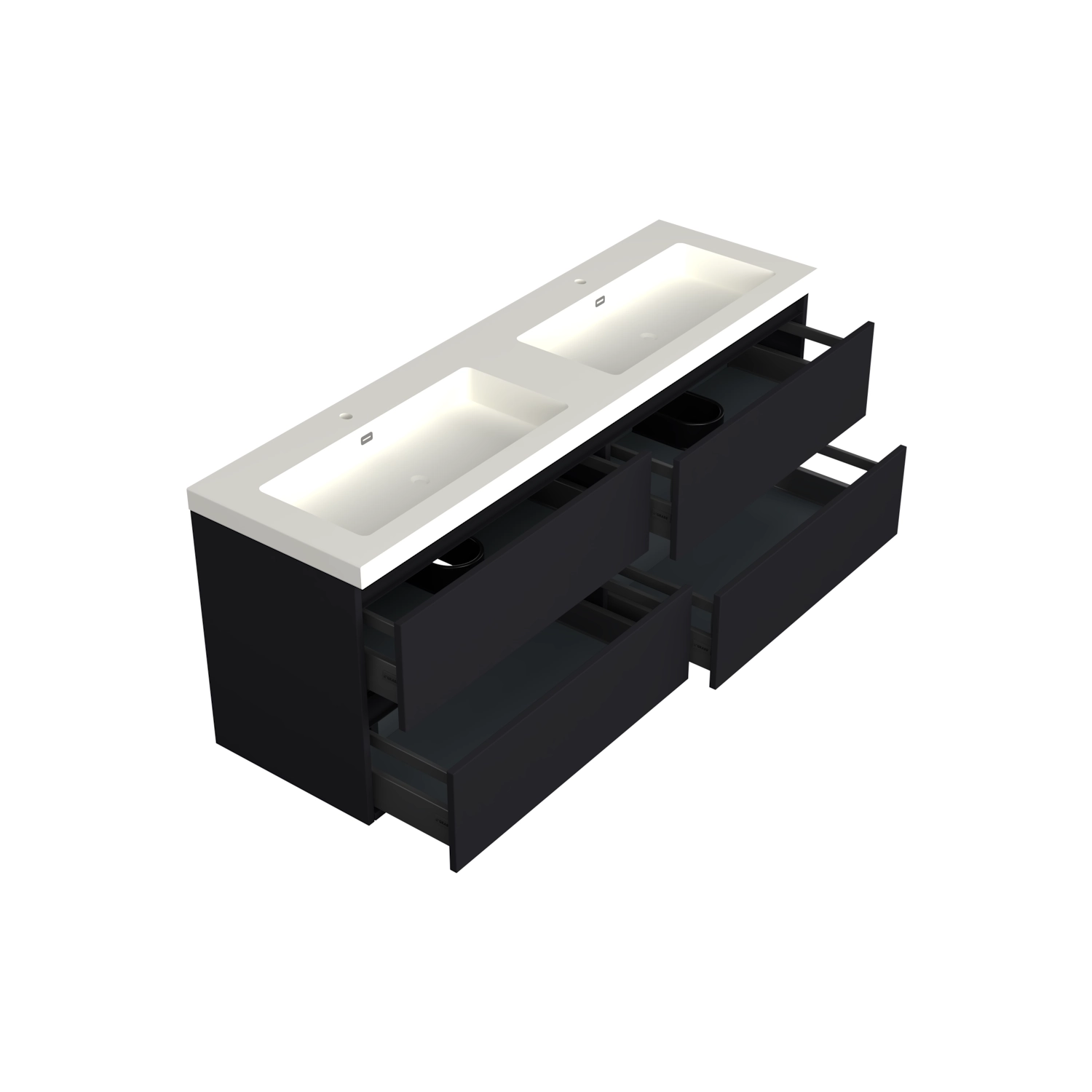 Wastafelonderkast Lumiere Mat Zwart 4-lades - 200x45x58cm - 2-uitsparingen