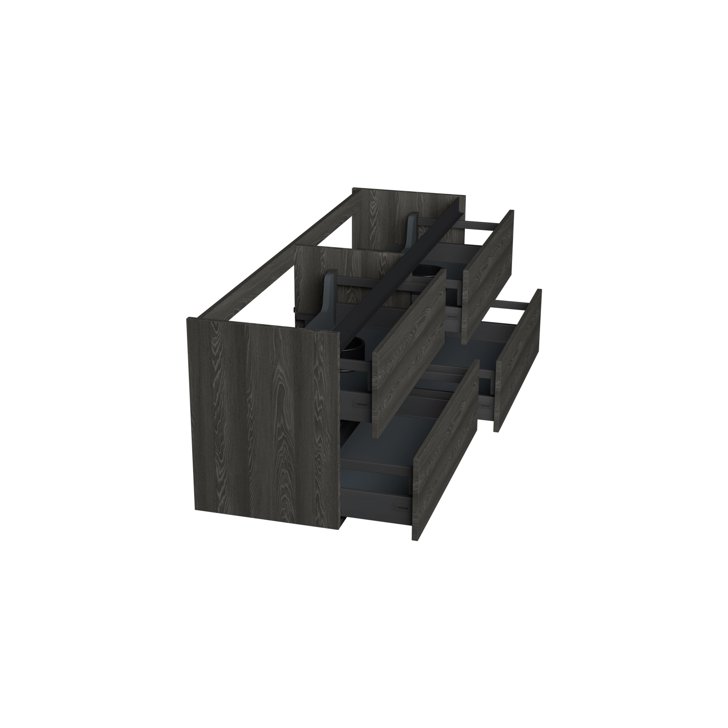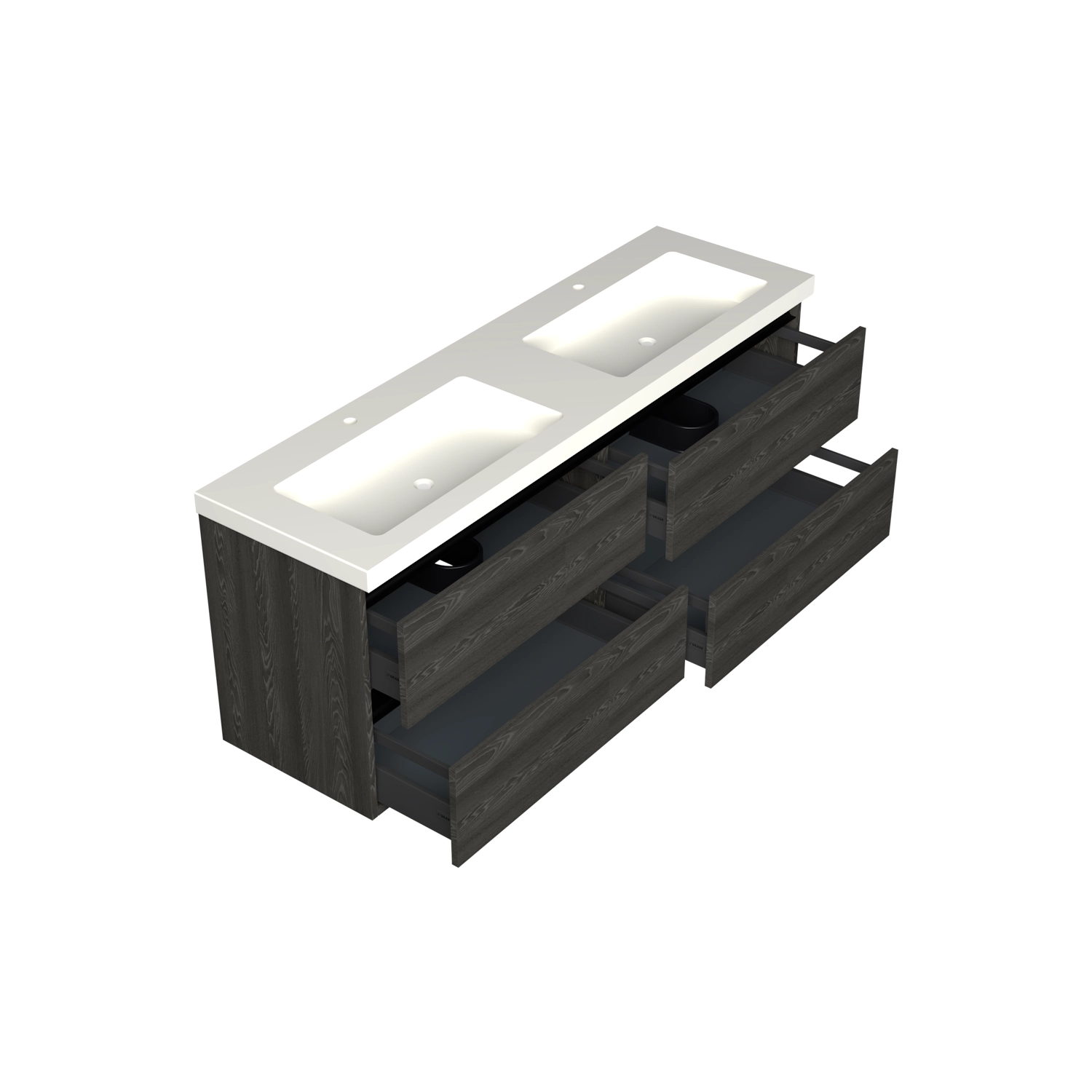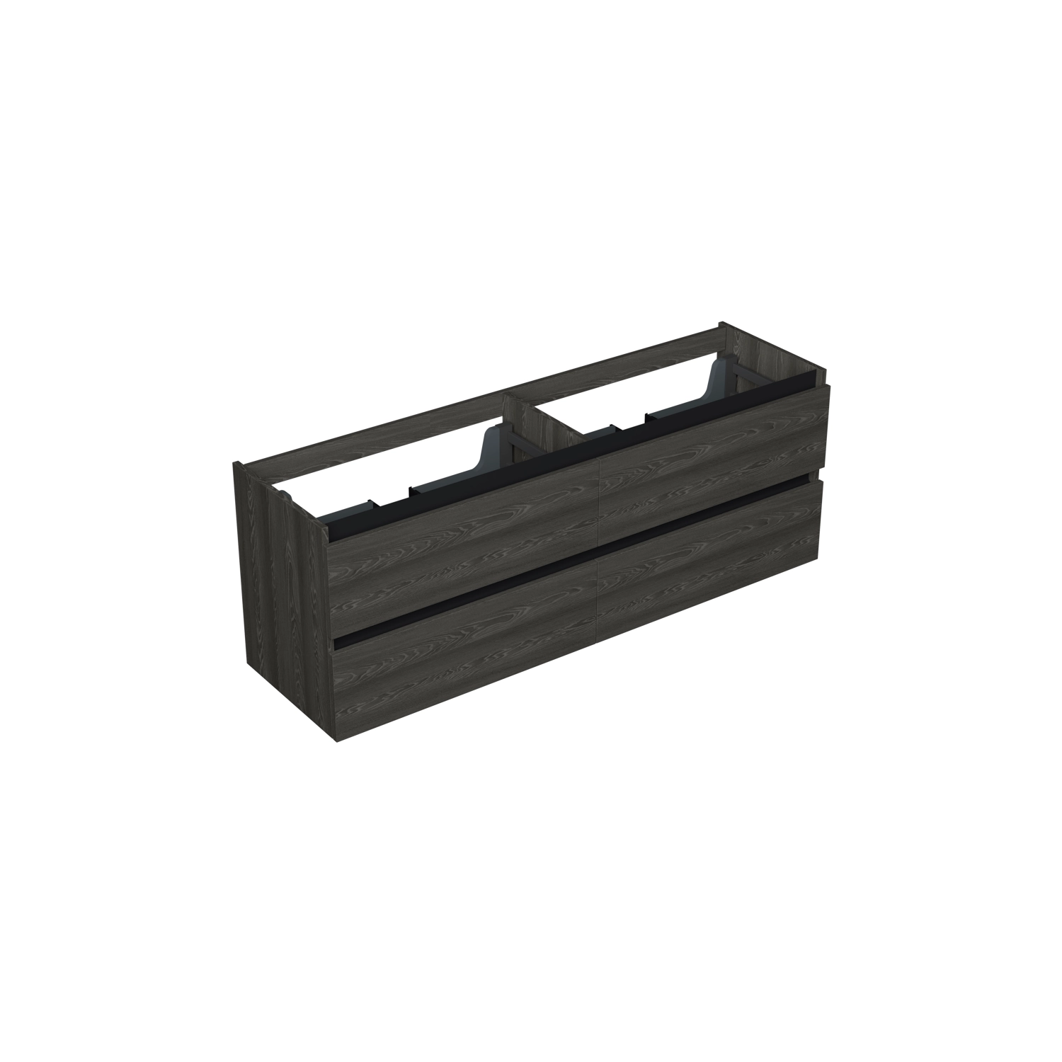 Onderkast 159 x 45 x 58 cm ➤ Excl. Wastafel ✓ Kleur: Zwart Eiken ✓ Twee diepe Modern, 4x greeploos lades met 2 sifon uitsparingen ✓ MDF met FSC-keurmerk ✓ Installatie: Voorgemonteerd