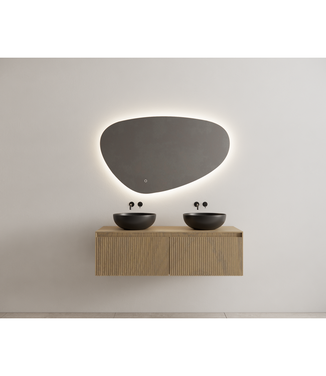 Deze onderkast is gemaakt van hoogwaardig eiken fineer op MDF en heeft een Ash Gray kleur. Het ribbelfront creëert een speels reliëf motief, dat een prachtig contrast biedt met de strakke lijnen van het meubel. De onderkast heeft een afmeting van 120x46x35cm, waardoor je voldoende opbergruimte hebt voor al je badkamerspullen.