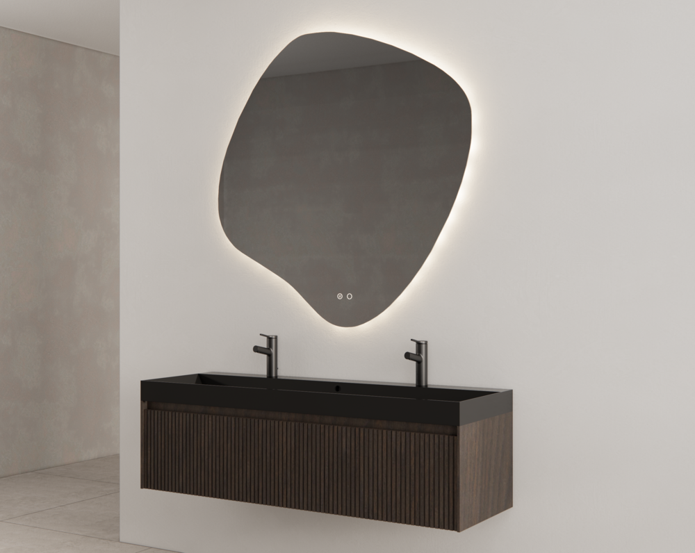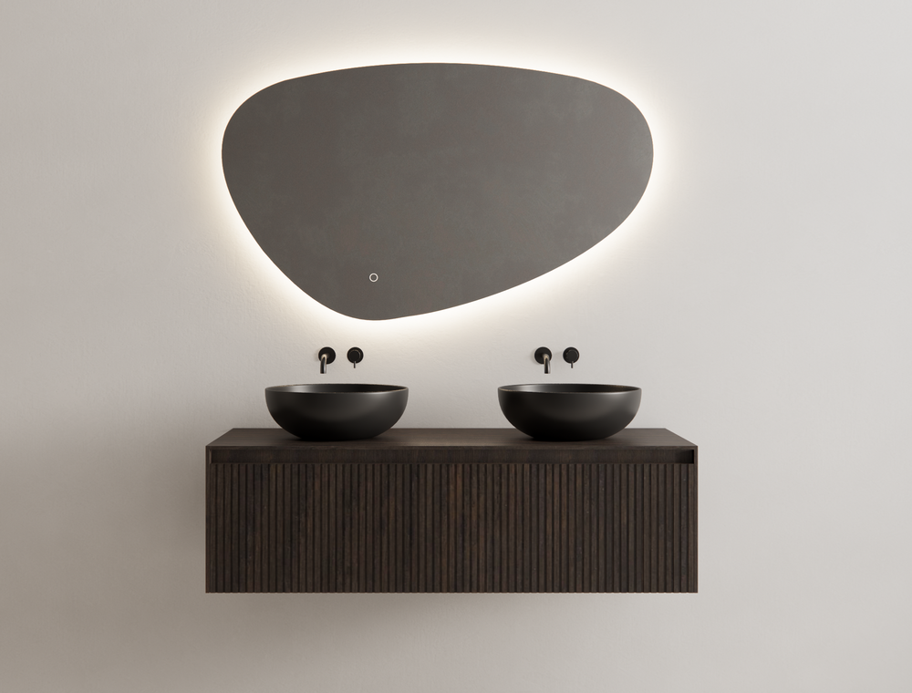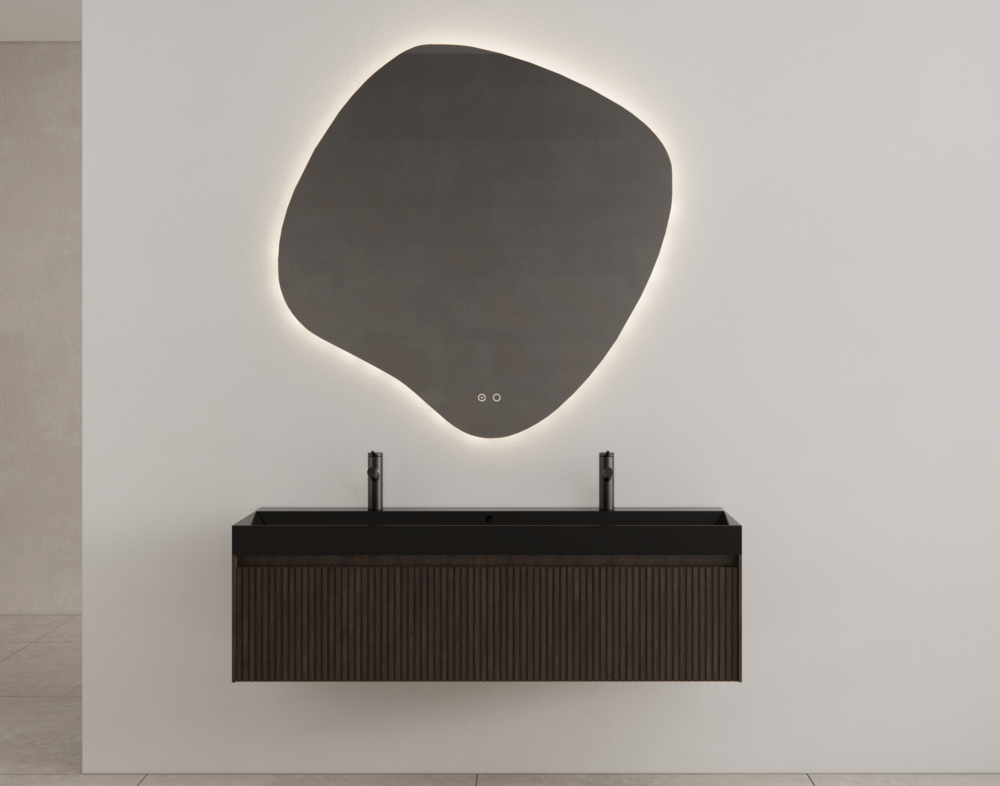 Voel en ervaar de pure luxe van Relief. Creëer een luxueuze uitstraling in je badkamer met de Wastafelonderkast met Ribbelfront Timotheus Charcoal.