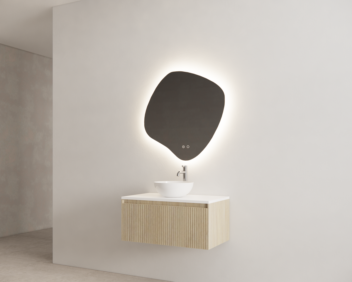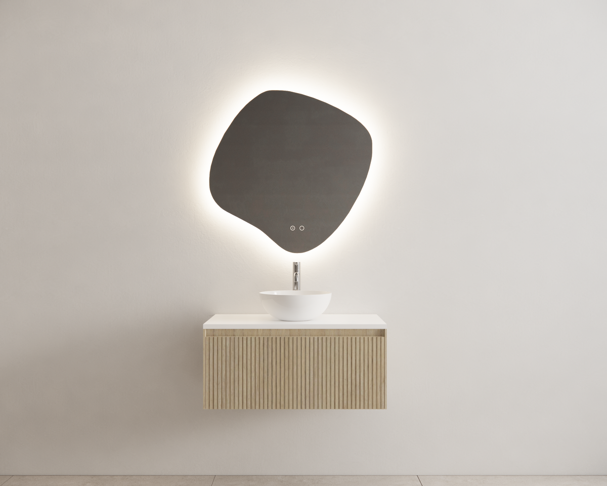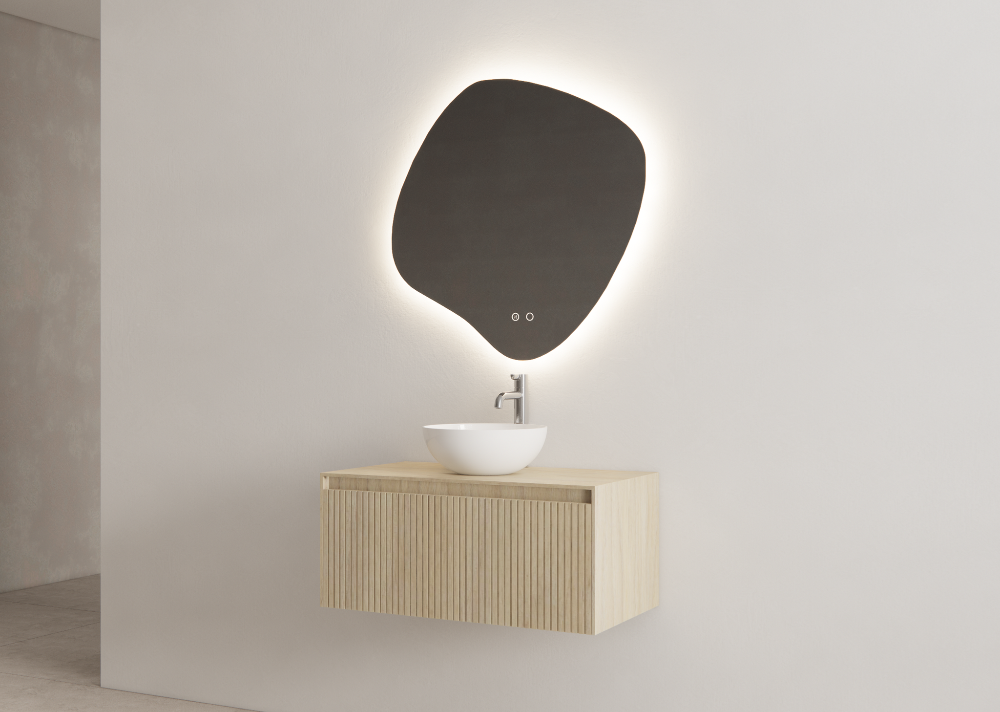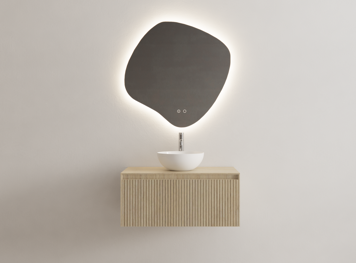 Ontworpen met jouw behoeften in gedachten, beschikt de onderkast over een enkele lade met metalen ladegeleiders van BLUM. De afmetingen van 895x455x350 mm zorgen voor een perfecte pasvorm in diverse badkamerruimtes. Geen sifon uitsparing betekent 1/3 meer opbergruimte in de lade, een praktisch detail dat jouw dagelijkse routine vereenvoudigt.
