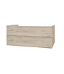 Het licht eiken fineer brengt warmte in je badkamer en vormt een perfecte aanvulling op eigentijdse interieurs. De horizontale ribbels op de voorkant voegen een subtiel reliëf toe, waardoor dit badkamermeubel een statement maakt.
