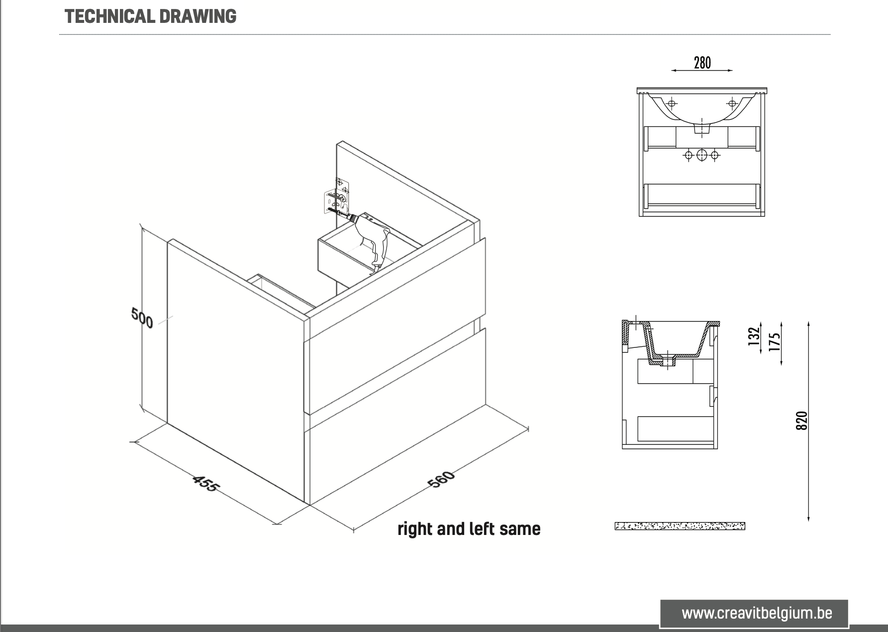 Afmetingen badkamermeubel (BxDxH) | 56x45,5x50cm |