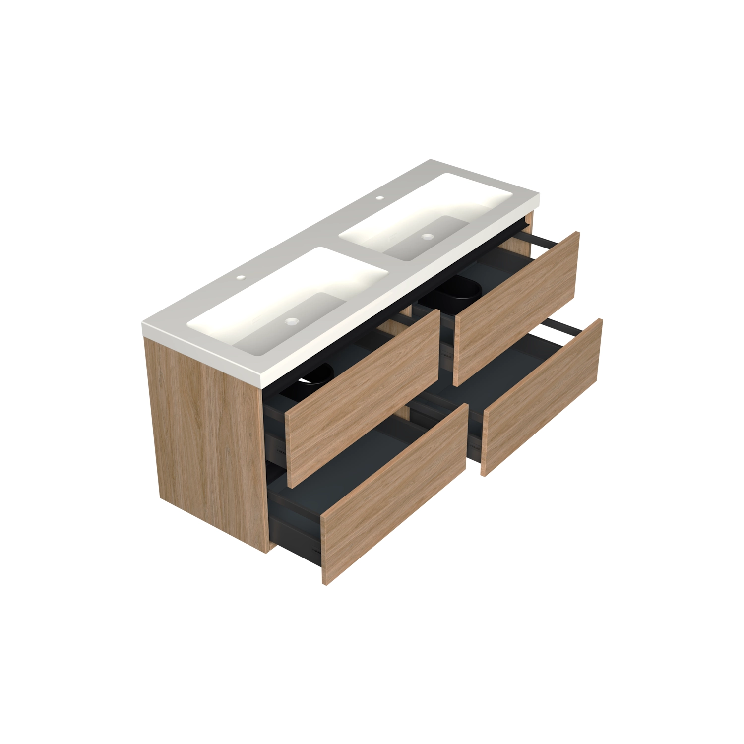 Wastafelonderkast Uludag Rustiek Eiken 4-lades - 140x45x58cm - 2-uitsparingen