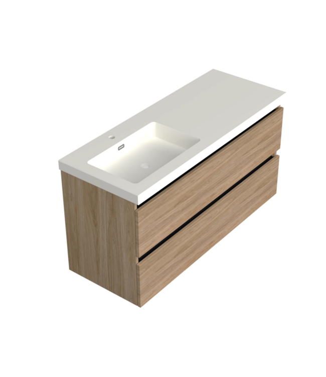 ✓ Onderkast 119 x 45 x 58 cm ➤ Excl. Wastafel ✓ Kleur: Uludag Rustiek Eiken ✓ Twee diepe greeploos lades met 1 sifon uitsparing - LINKS ✓ MDF met FSC-keurmerk ✓ Installatie: Voorgemonteerd Lees meer.