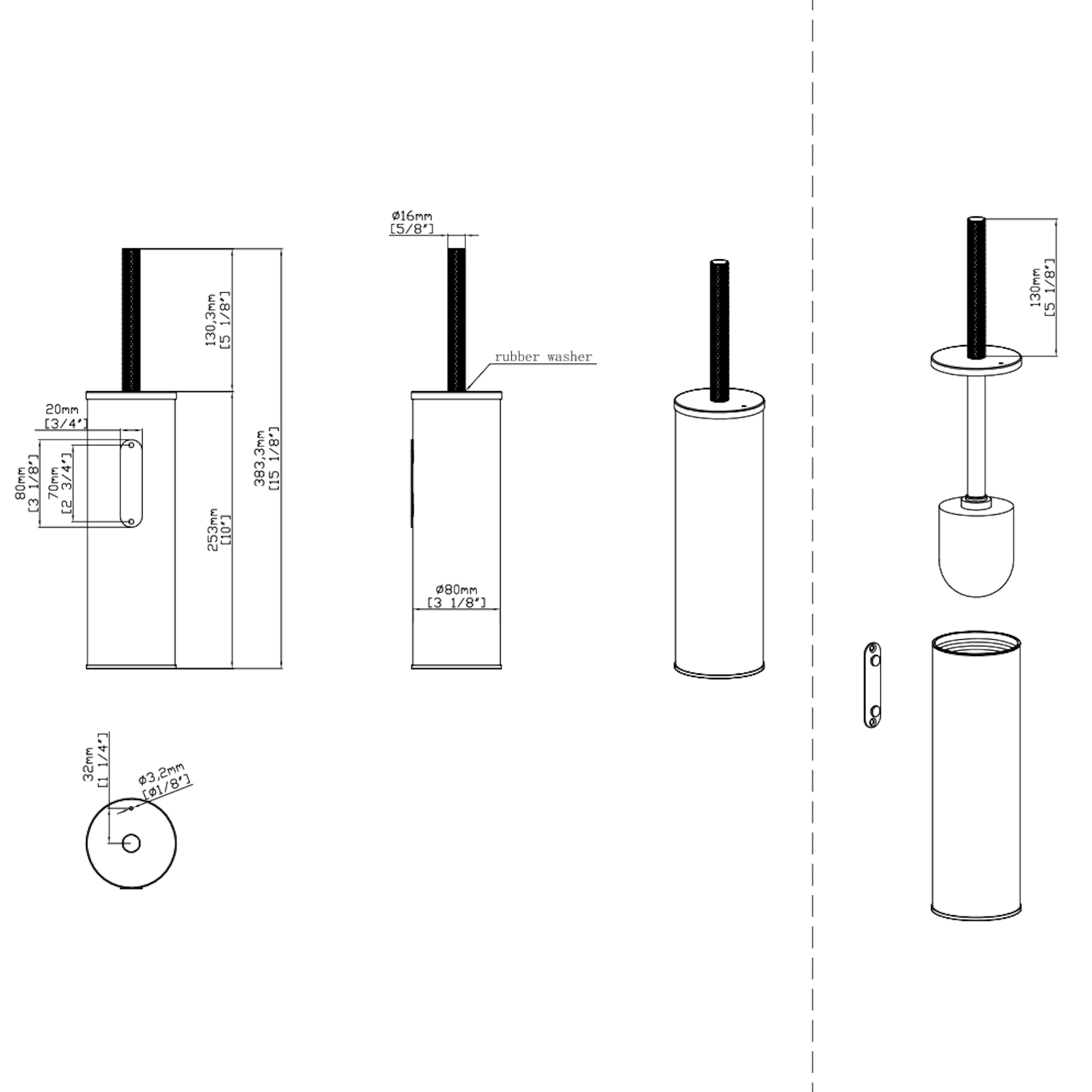Wat deze wc-borstelhouder onderscheidt, is de hybride bevestiging. Dankzij de minimalistische beugel kun je hem strak aan de wand hangen—wat ik altijd aanraad als je de vloer makkelijk wilt dweilen zonder obstakels. Maar mocht je later de indeling van je toilet veranderen of liever niet in je nieuwe tegels boren, dan zet je hem net zo stabiel neer als vrijstaand model.