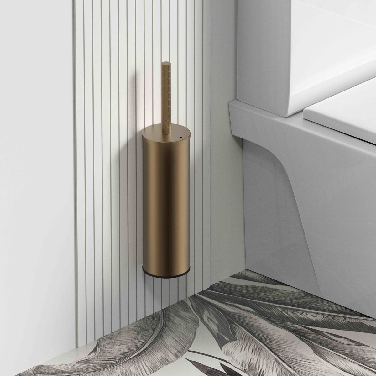 De subtiele ribbelstructuur op het handvat geeft deze wc borstelhouder een luxueuze en tactiele uitstraling. De matte bronskleur brengt warmte en elegantie in elke ruimte en vormt een prachtig contrast met lichte of marmeren oppervlakken. Dankzij het strakke, minimalistische design past deze borstel perfect in moderne, industriële én klassieke interieurs.