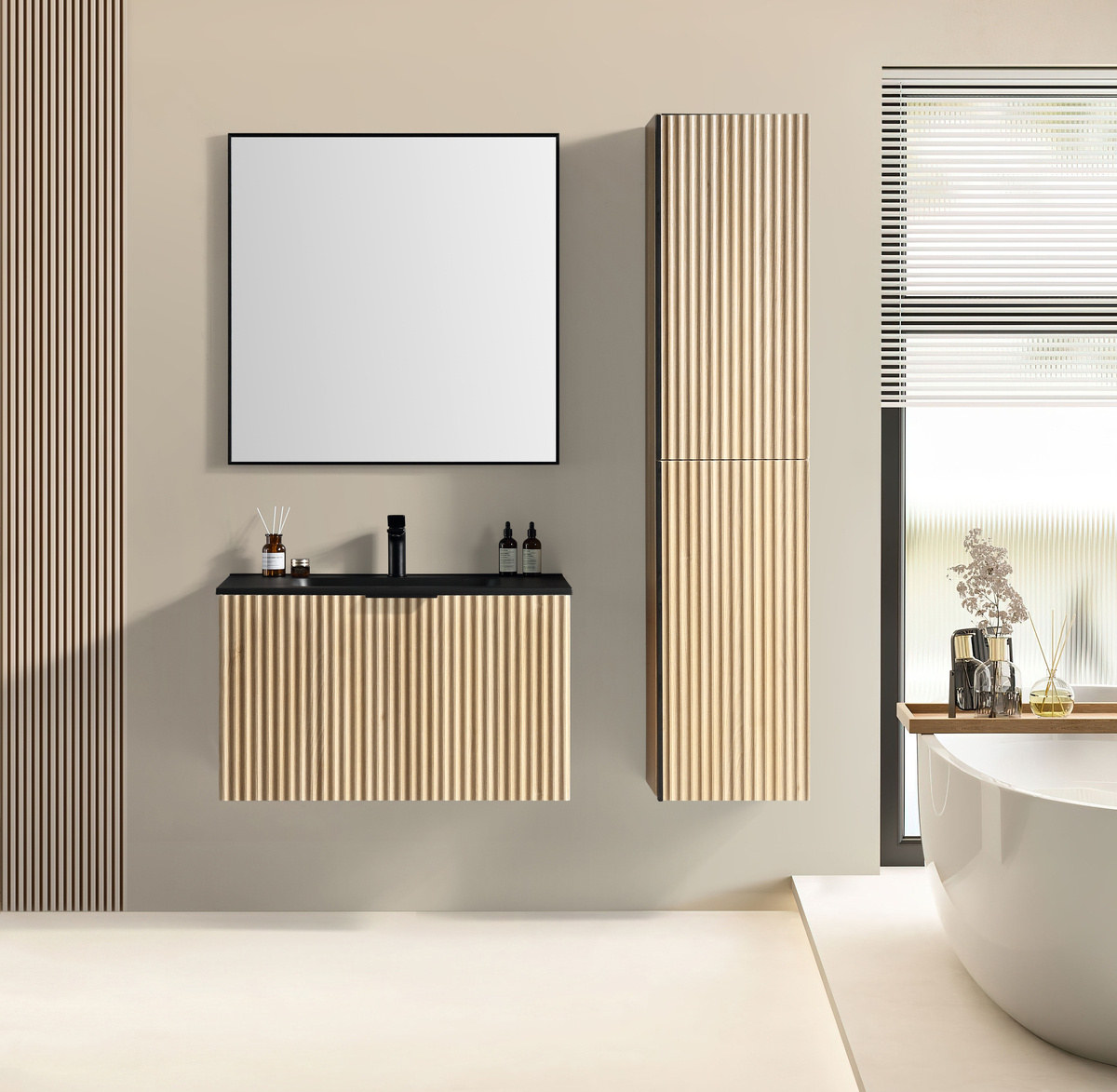 De Wiesbaden badkamermeubel set Ribbella 80cm combineert stijl en comfort op een sublieme manier. Deze complete set bestaat uit een onderkast, wastafel en spiegel die samen jouw badkamer transformeren tot een moderne oase van rust en luxe.