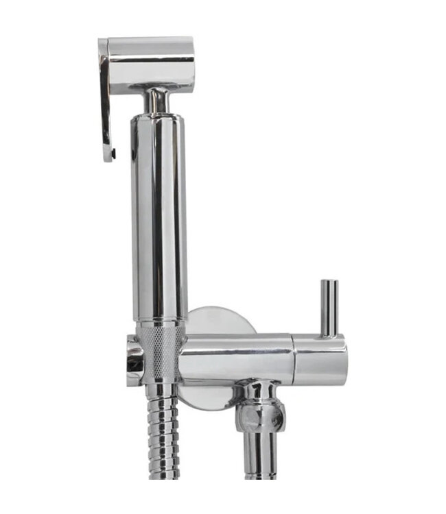 Deze stijlvolle Wiesbaden bidetset biedt comfort en luxe in de badkamer. De set bestaat uit een messing verchroomde knijphanddouche, een chroom doucheslang van 120 cm, en een stevige opsteekgarnituur met keramische bediening. Dankzij de hoekstopkraan regelt u eenvoudig de waterstroom, en het chroom rozet zorgt voor een strakke afwerking. Perfect voor wie op zoek is naar een betrouwbare taharet set. De set wordt geleverd in een luxe verpakking met venster.
