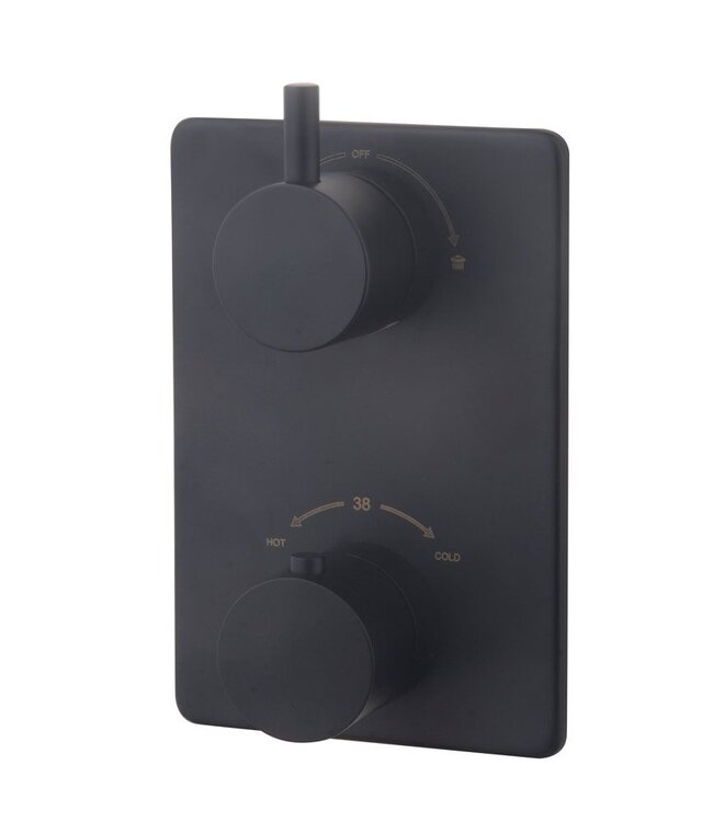 Deze inbouwthermostaat met 2-wegs systeem maakt het schakelen tussen de handdouche en de hoofddouche moeiteloos. Met de thermostaatknop voor hot/cold regel je eenvoudig de watertemperatuur naar jouw voorkeur, terwijl de begrenzer op 38°C ervoor zorgt dat de kraan veilig te gebruiken is, zelfs door kinderen.