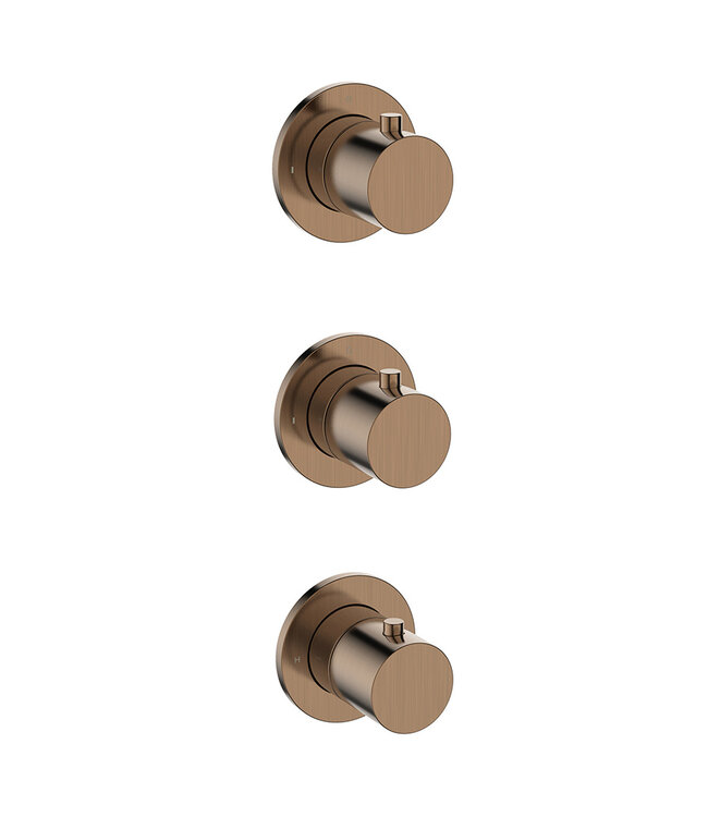 Geef je badkamer een unieke, warme uitstraling met de Wiesbaden Caral thermostatische douchekraan in de kleur Geborsteld Brons/Koper. Dit afbouwdeel combineert een minimalistisch, rond design met de modernste techniek. Dankzij de twee geïntegreerde stopkranen heb je de volledige controle over je douche-ervaring: schakel moeiteloos tussen je hoofddouche en handdouche, of gebruik ze tegelijkertijd.