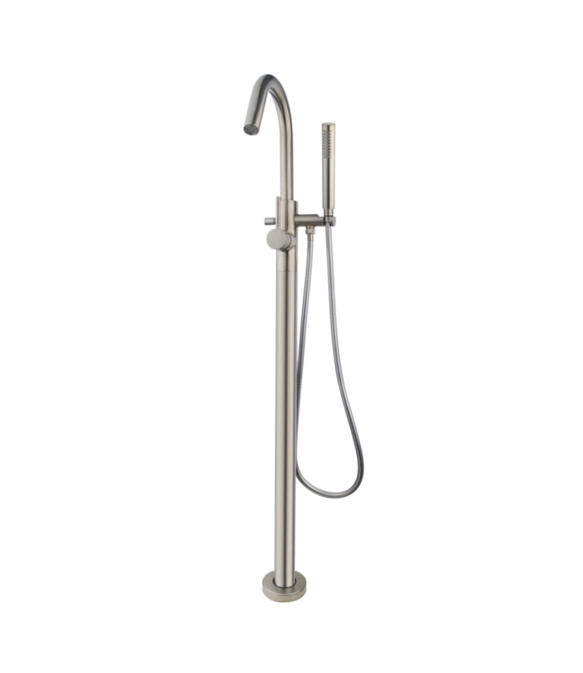 De Wiesbaden Caral Badkraan is speciaal ontworpen voor vrijstaande baden en voegt direct een vleugje moderne elegantie toe aan elke badkamer. Met zijn slanke lijnen en geborsteld stalen afwerking is deze kraan een eyecatcher die de aandacht trekt. Dankzij de hoogte van 1240 mm en de lange uitloop van 223 mm biedt deze kraan niet alleen een indrukwekkend uiterlijk, maar ook uitstekende functionaliteit.