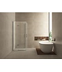 Het aluminium profiel van de cabine is afgewerkt in chroom, wat zorgt voor een stijlvolle en moderne uitstraling. De dubbele draaideur maakt het gemakkelijk om in en uit de cabine te stappen, terwijl de hoekinstap zorgt voor een ruime en comfortabele douche-ervaring.