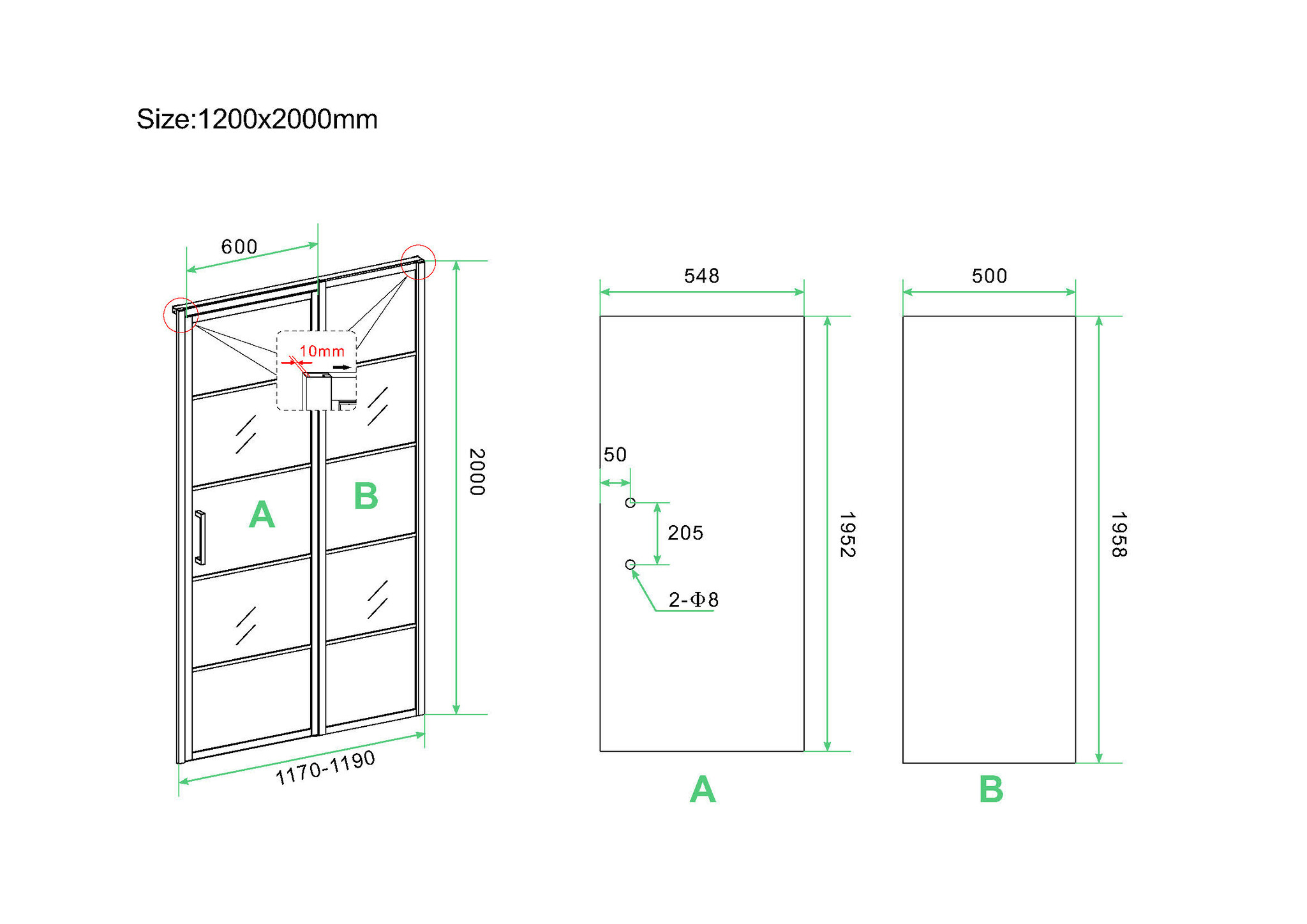De douchedeur is eenvoudig te installeren en aan te passen dankzij het verstelbare profiel. Het profiel is verstelbaar van 1170 tot 1190 mm, waardoor de douchedeur perfect past in vrijwel elke badkamer. Het profiel is gemaakt van hoogwaardig aluminium en heeft een matzwarte afwerking, waardoor het perfect past bij de rest van uw badkamer.