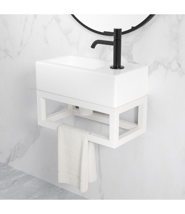 ✓ Fonteinframe RVS ✓ Excl. fontein/Kraan/Sifon/Plug ✓ Te gebruiken als Handdoekhouder ✓ Passend voor alle fonteinen met 40x22cm afmetingen ✓ Verkrijgbaar in 6 kleuren Lees meer.