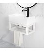 Het Wiesbaden Fonteinframe Nick in mat wit is de perfecte toevoeging aan elke toiletfontein. Met zijn strakke afmetingen van 395 x 150 x 215 mm past dit frame bij vele fonteinmodellen (40x22cm), zowel met als zonder kraangat. Het hoogwaardige RVS-materiaal biedt een duurzame oplossing en de verborgen ophanging zorgt voor een modern en opgeruimd uiterlijk in uw toiletruimte. Dit fonteinframe kan tevens dienen als praktische handdoekhouder. Houd er rekening mee dat het frame exclusief fonteintafel en toebehoren wordt geleverd. U kunt deze eenvoudig apart bestellen.
