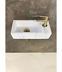 Het fonteintje, vervaardigd uit hoogwaardig keramiek met een prachtige marmerlook, straalt klasse uit en is tegelijkertijd duurzaam en gemakkelijk te onderhouden. De geborsteld messing toiletkraan en vaste waste voegen een vleugje moderniteit toe aan het geheel, terwijl het matte goud de perfecte accentkleur biedt voor een tijdloze uitstraling.