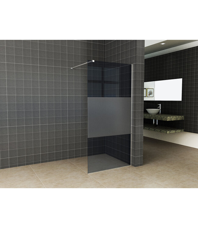 Deze douchewand combineert rookglas met een melkglas middenband, wat zorgt voor een perfecte balans tussen privacy en lichtdoorlatendheid. Het 8 mm dikke veiligheidsglas garandeert stabiliteit en veiligheid. Dankzij de nano-coating blijven kalkaanslag en zeepresten op afstand, waardoor de glazen douchewand er altijd schoon en helder uitziet.