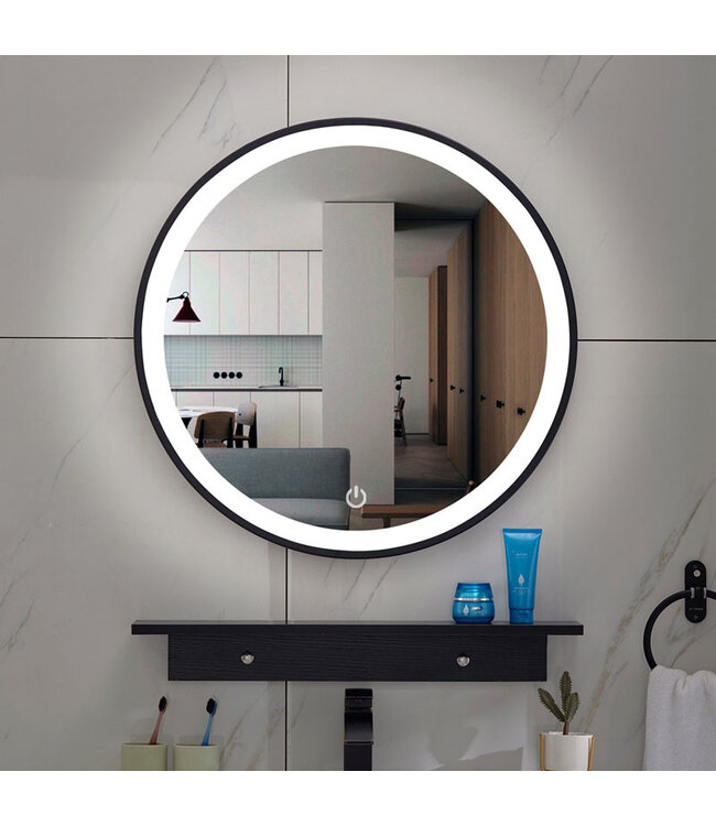 Met deze opvallende, ronde spiegel met aluminium mat zwart kader en geïntegreerde LED verlichting creëer je zonder moeite een blikvanger in je badkamer.