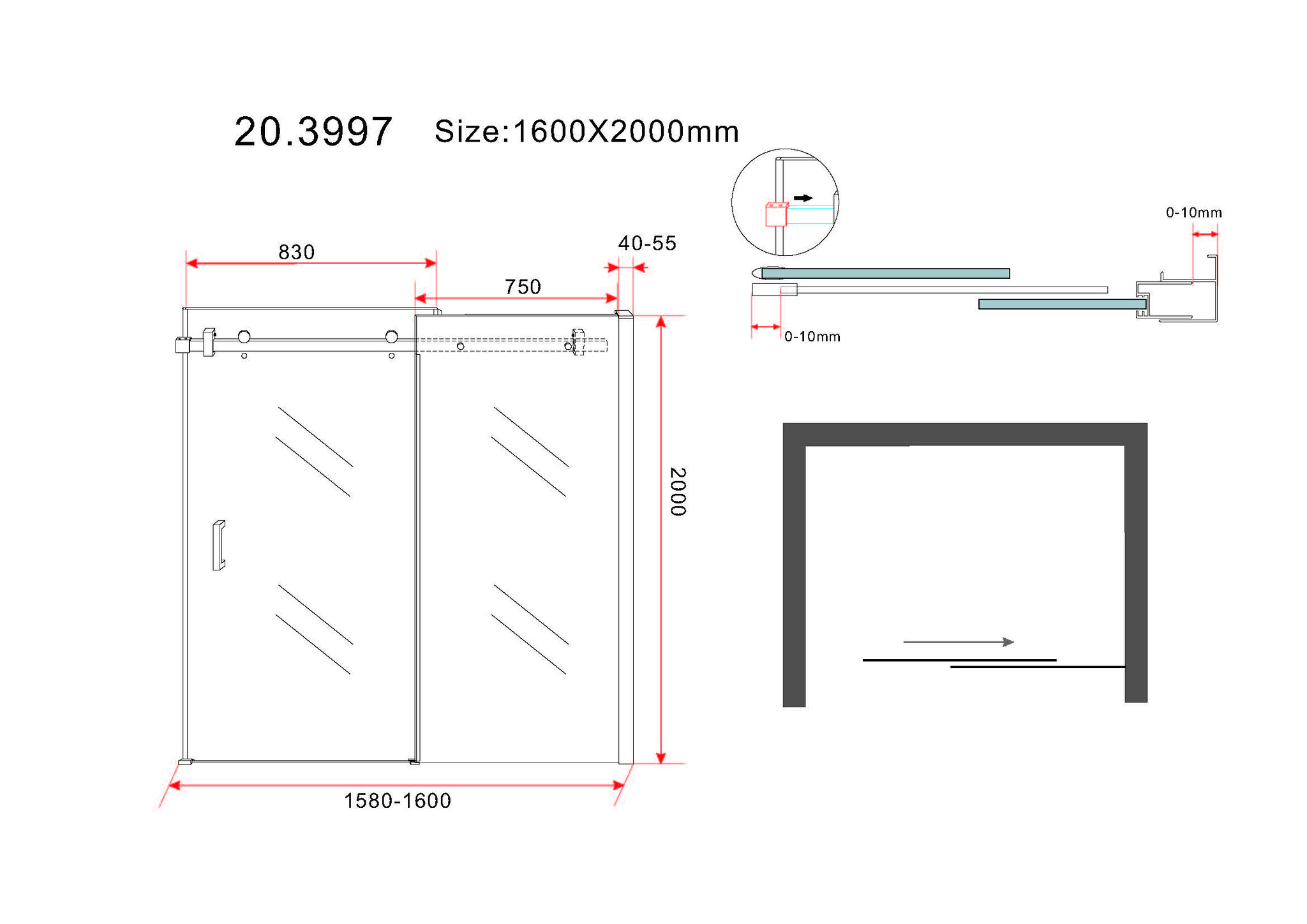 Deze douchedeur is voorzien van een schuifdeur met rollers sluiting. Dit betekent dat de deur geruisloos en zachtjes sluit, zonder dat je je zorgen hoeft te maken over harde klappen. Daarnaast is het profiel verstelbaar van 1580 tot 1600 mm, waardoor deze douchedeur perfect past in vrijwel elke nis.