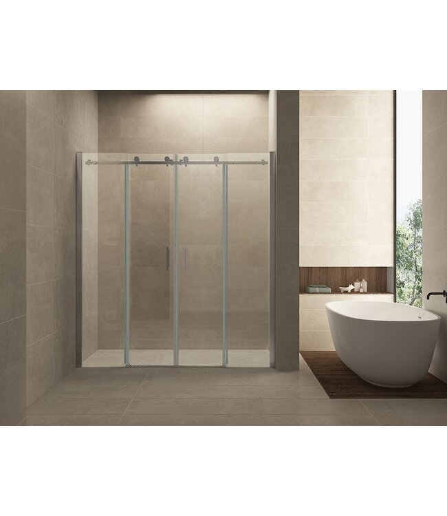 Heb je een grote nismaat waarin je gaat douchen? Dan is deze 4-delige schuifdeur een mooie oplossing om de nis af te sluiten. Bestaat uit twee vaste wanden met aan beide wanden een schuivende deur.