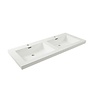Met een breedte van 120 cm en twee ruime wasbakken, biedt dit Wiesbaden wastafel glans wit Vision 120x46x5,5 cm dubbel voldoende ruimte voor jou en je partner om tegelijkertijd gebruik te maken van de wastafel. De twee kraangaten en overlopen maken het mogelijk om comfortabel en efficiënt gebruik te maken van de wastafel.