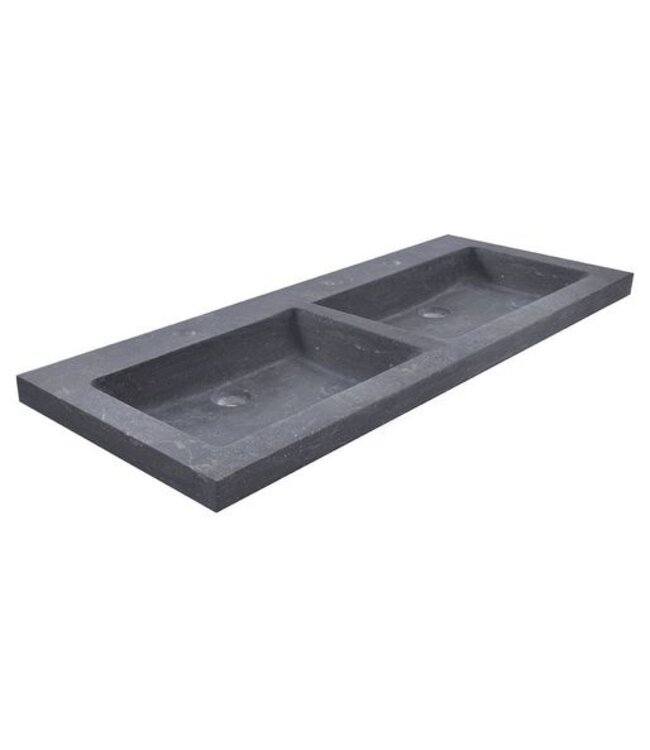 Deze dubbele wastafel, met zijn robuuste afmetingen van 120x46x5 cm en twee kraangaten, belichaamt vakmanschap en elegantie in één. Met twee wasbakken biedt deze wastafel een handige oplossing voor drukbezochte badkamers.