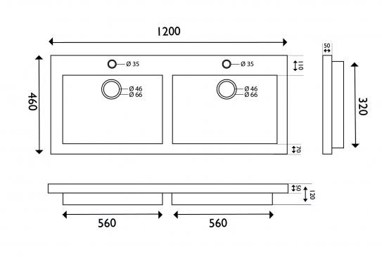 Afmetingen Wastafel | 120 x 46 x 5 cm |