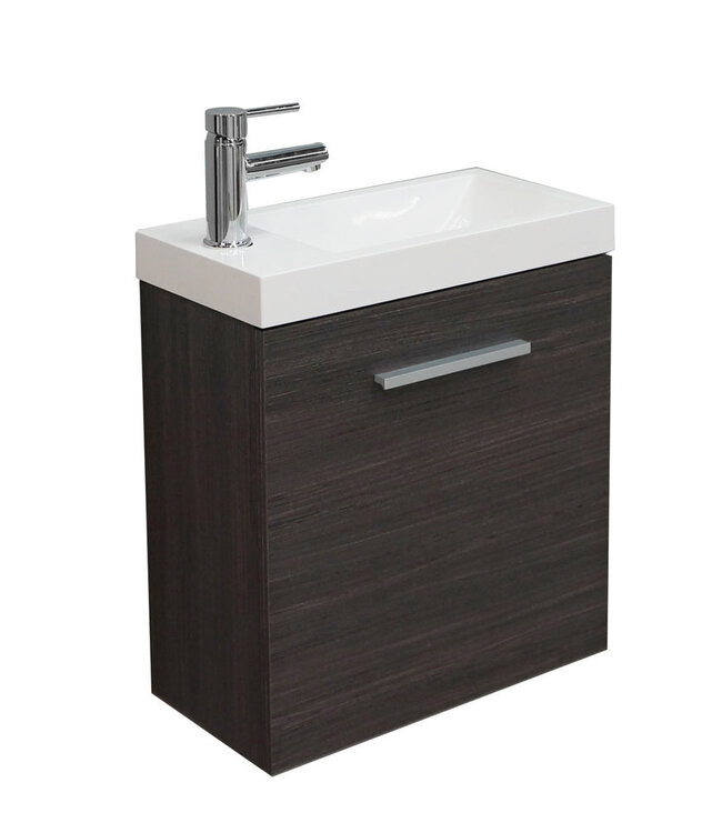 Het Wc kastje + wastafel Emma houtnerf grijs wordt geleverd met een hoogwaardige kunstmarmeren wastafel, die perfect samengaat met de houtnerf grijze afwerking van de kast. Met zijn afmetingen van 500 x 250 x 500 mm biedt dit kastje voldoende ruimte voor je toiletbenodigdheden.